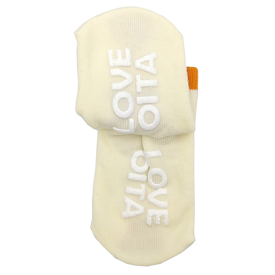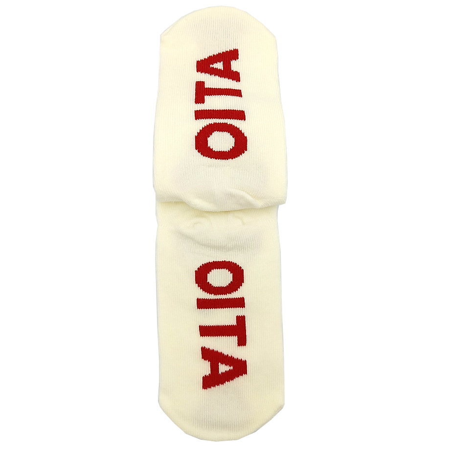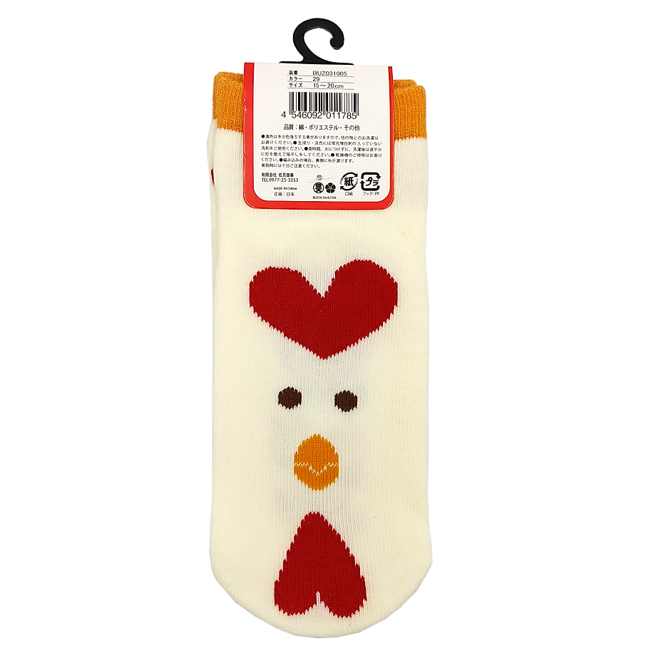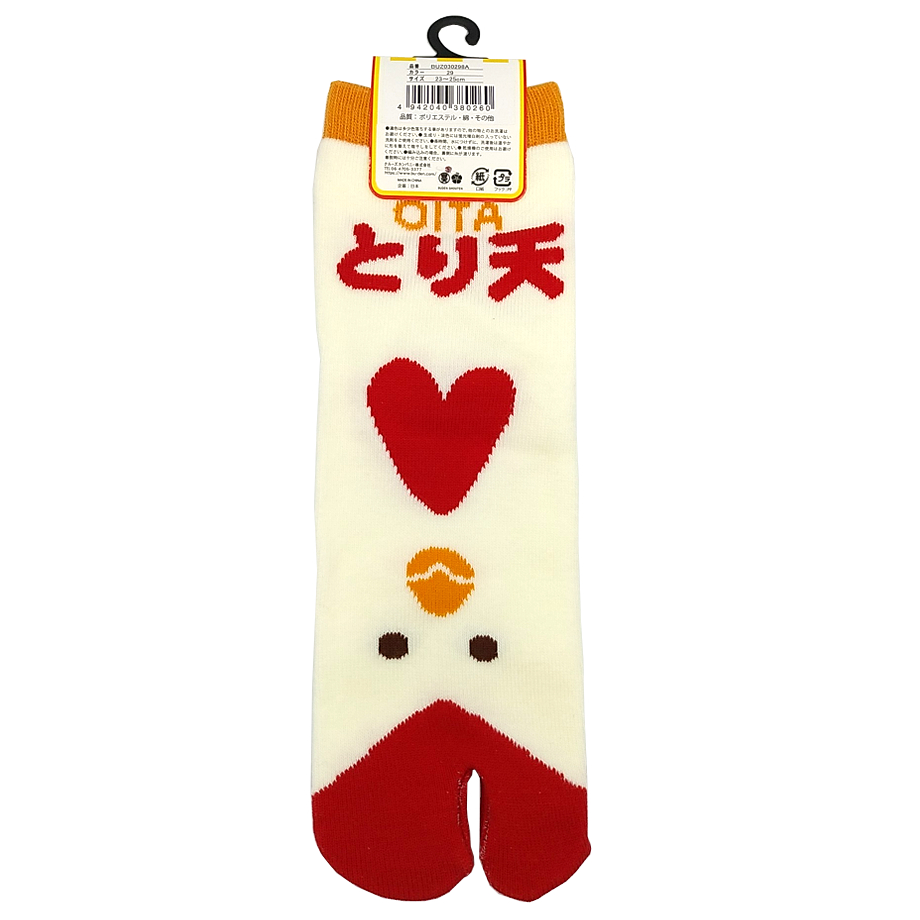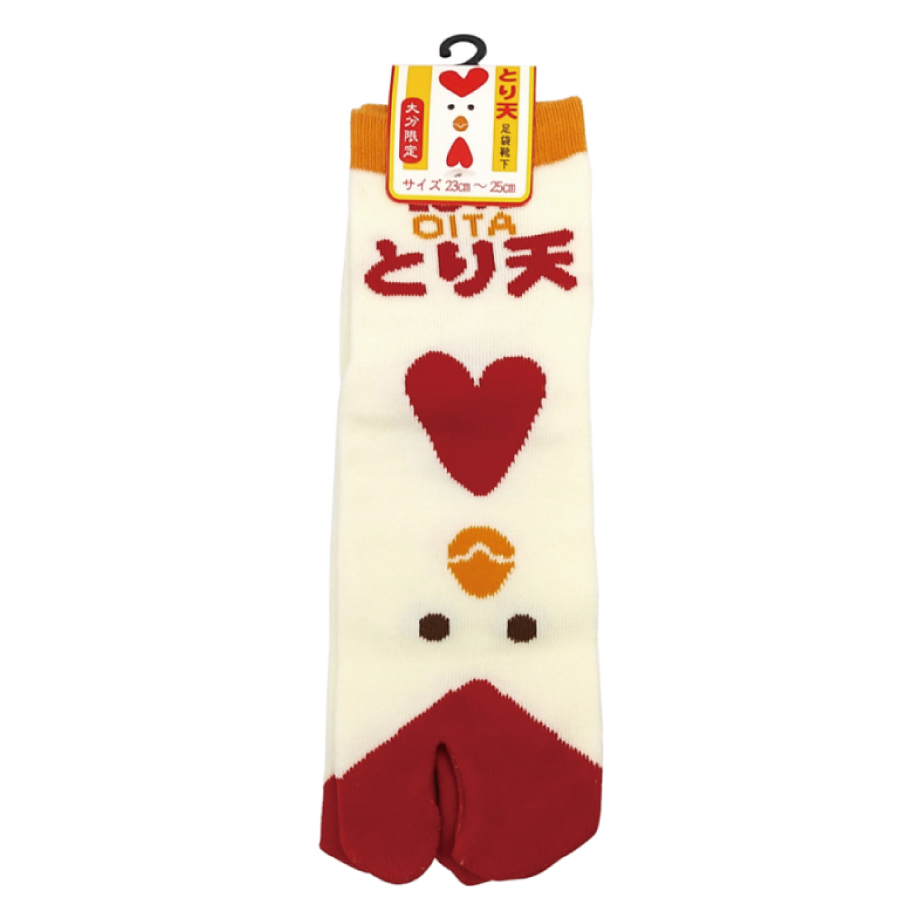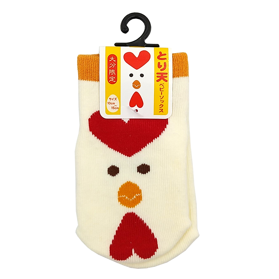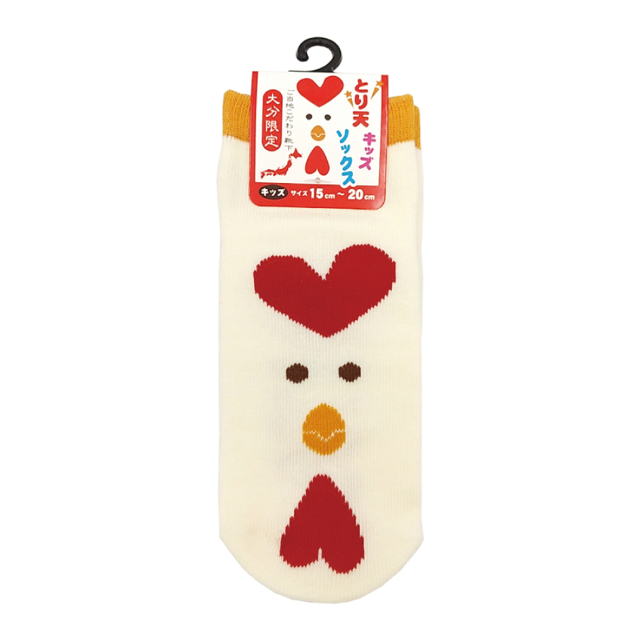 大分県の郷土料理「とり天」をモチーフにした、ニワトリ柄の靴下です。